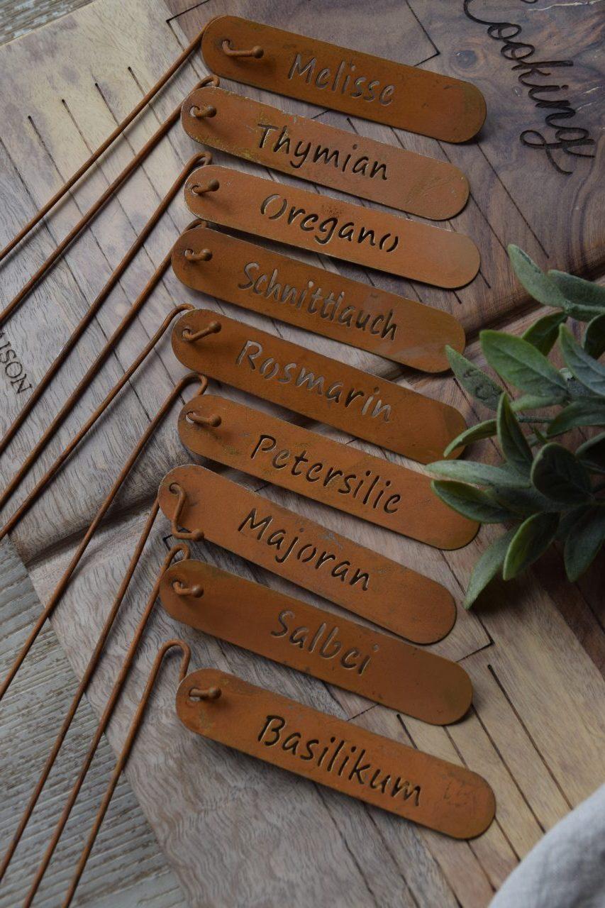 12 Kräuterstecker Rost Design - Garten Deko Pflanzenschilder 20cm