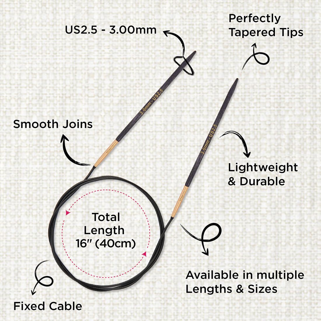 Endlich entspannt Stricken! Diese besonderen Cubics-Stricknadeln von KnitPro haben eine einzigartige ergonomische Form - viel angenehmer in der Hand als runde Nadeln. Perfekt für Menschen mit Arthritis oder Handgelenksproblemen. Aus laminiertem Birkenholz in elegantem Lila mit mattgoldenen Verbindern. Das drallfreie Edelstahlkabel ist super flexibel. Länge: 80 cm, Stärke: 3.00 mm. Auch ideal für Strick-Anfänger! Wird in plastikfreier, umweltfreundlicher Verpackung geliefert. Macht Stricken zum puren Vergnügen - probiere den Unterschied selbst aus!