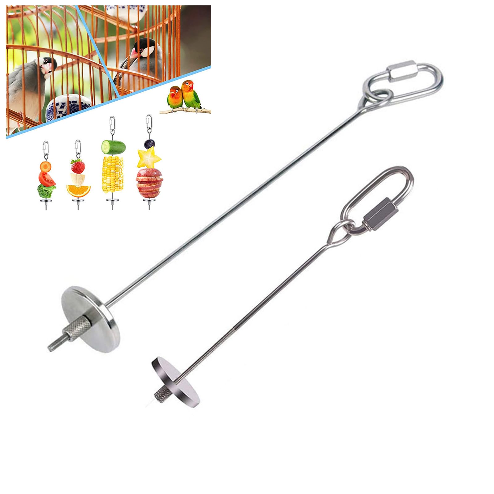Vogelhalter, dieser Futterspender macht die Fütterung eurer gefiederten Freunde zum Vergnügen! Aus rostfreiem Edelstahl - hygienisch und langlebig. 56cm lange Kette - lässt sich super in jedem Käfig aufhängen. Perfekt für Papageien, Kanarienvögel, Hamster und Kaninchen - total vielseitig. Einfach Obst und Gemüse aufspießen - Äpfel, Karotten, Mais und mehr. Macht das Füttern zum Spiel - beschäftigt die Tiere und fördert natürliches Verhalten. Leicht zu reinigen - einfach abspülen und trocknen. Auch als Leckerli-Spiele einsetzbar - gegen Langeweile. Eure Tiere werden's lieben - und ihr die praktische Handhabung. Einfach befüllen, aufhängen und zusehen, wie's angenommen wird!
