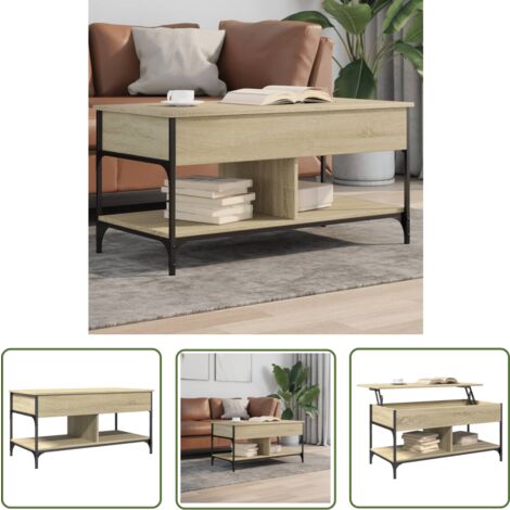 QJBSAVVA Ovaler Couchtisch Artisan Eiche 80x40x40,5 Cm - Moderner Beistelltisch Mit Stahlbeinen