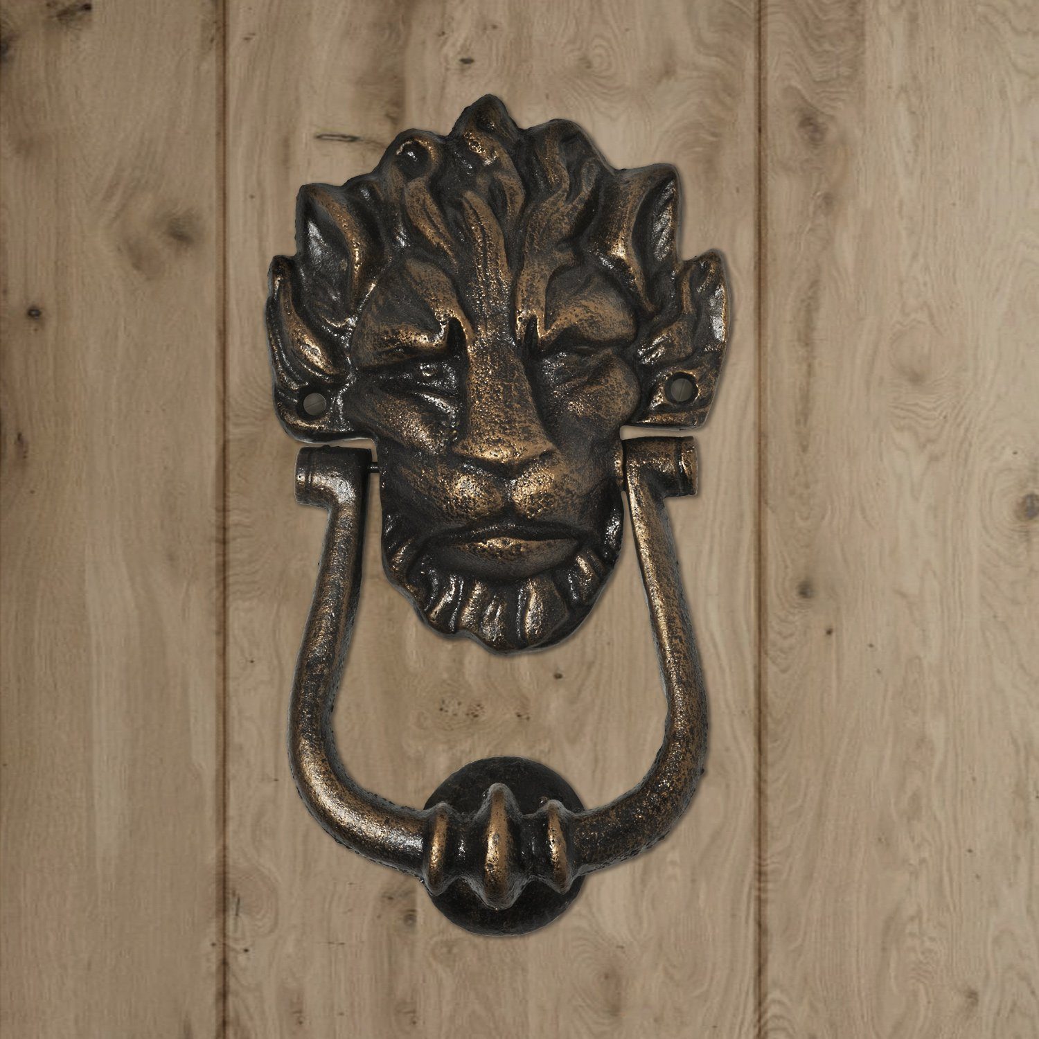 Majestätisch und voller Charakter! Dieser massive Türklopfer mit Löwenkopf aus Gusseisen bringt royalen Flair an deine Haustür. In bronze-optik künstlich gealtert für nostalgisches Ambiente. Maße: 18x41x12cm, stolze 4,8kg schwer. Schwere Ausführung aus massivem Gusseisen. Mit vorgebohrten Löchern für einfache Montage an Tür oder Tor. Perfekt als Ersatz für die Klingel oder als stilvolle Ergänzung. Verwandele deinen Eingang in ein Herrenhaus mit diesem beeindruckenden Türklopfer!