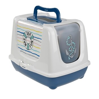Katzentoilette DUCHESSE Sweet Blau/weiß - Moderne Katzenklo Mit Abgerundeten Ecken 44,5x35,5x32cm
