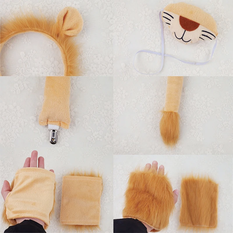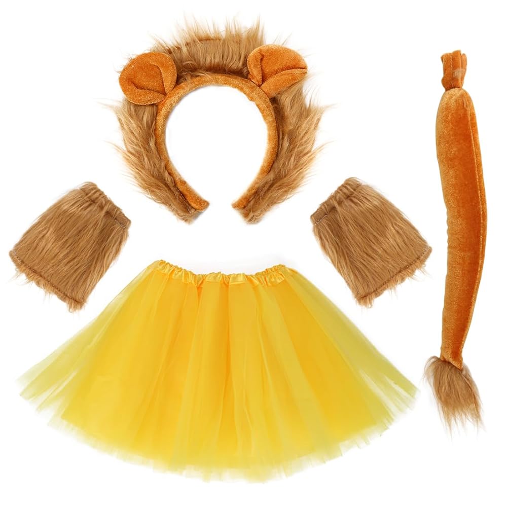 SDXCJY Löwen-Kostüm Set 4-teilig - Mit Ohren, Handschuhen, Schwanz & Tutu-Rock