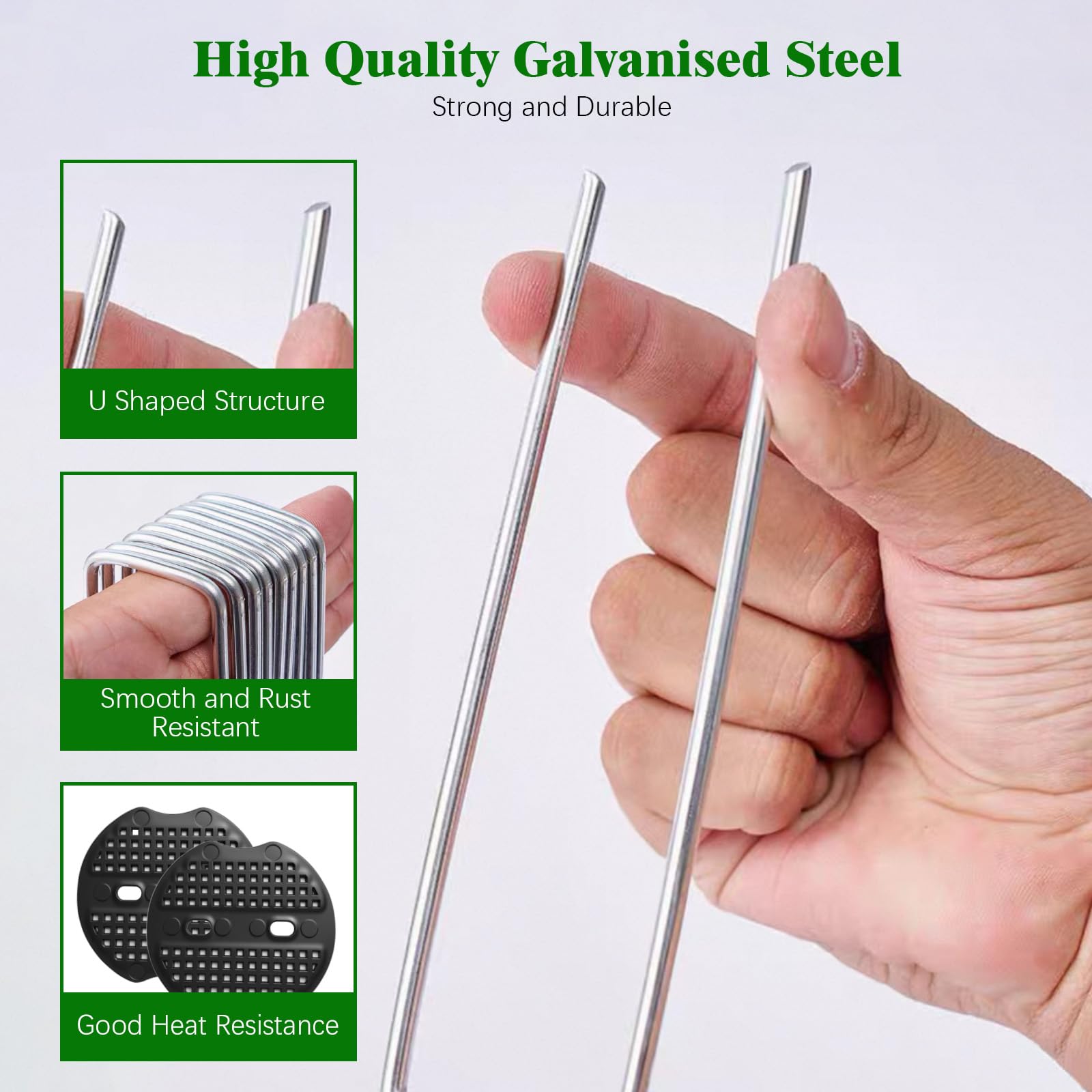 Fest verankert im Boden! Diese 60 verzinkten Erdanker von Dalephoric halten was sie versprechen. Mit 150mm Länge und U-Form greifen sie sicher im Boden - perfekt für Unkrautvlies, Kunstrasen, Zelte oder Gartenfolien. Aus robustem Stahl und rostgeschützt, halten sie jahrelang durch. Die angespitzten Enden gehen leicht in den Boden, die mitgelieferten Unterlegscheiben sorgen für zusätzlichen Halt. Super praktisch für Gärtner, Camper oder Handwerker. Nie mehr umherfliegende Folien oder verrutschte Planen! Einfach in den Boden stecken - fertig. Das Garten-Hilfsmittel, das du nicht mehr missen willst!