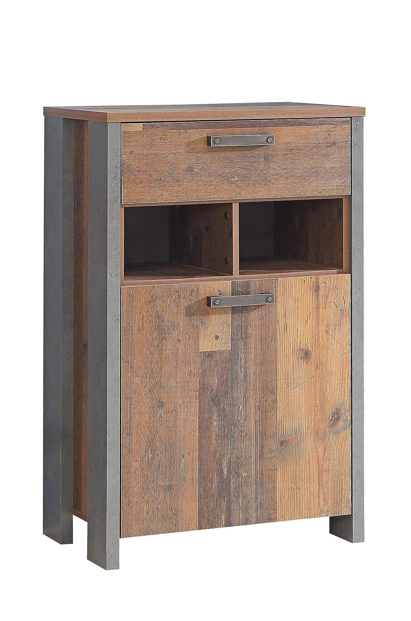 FORTE SKIVE Kompaktgarderobe Mit Spiegel - 2 Schubladen Betonoptik/Weiß - 75,4 X 157 Cm