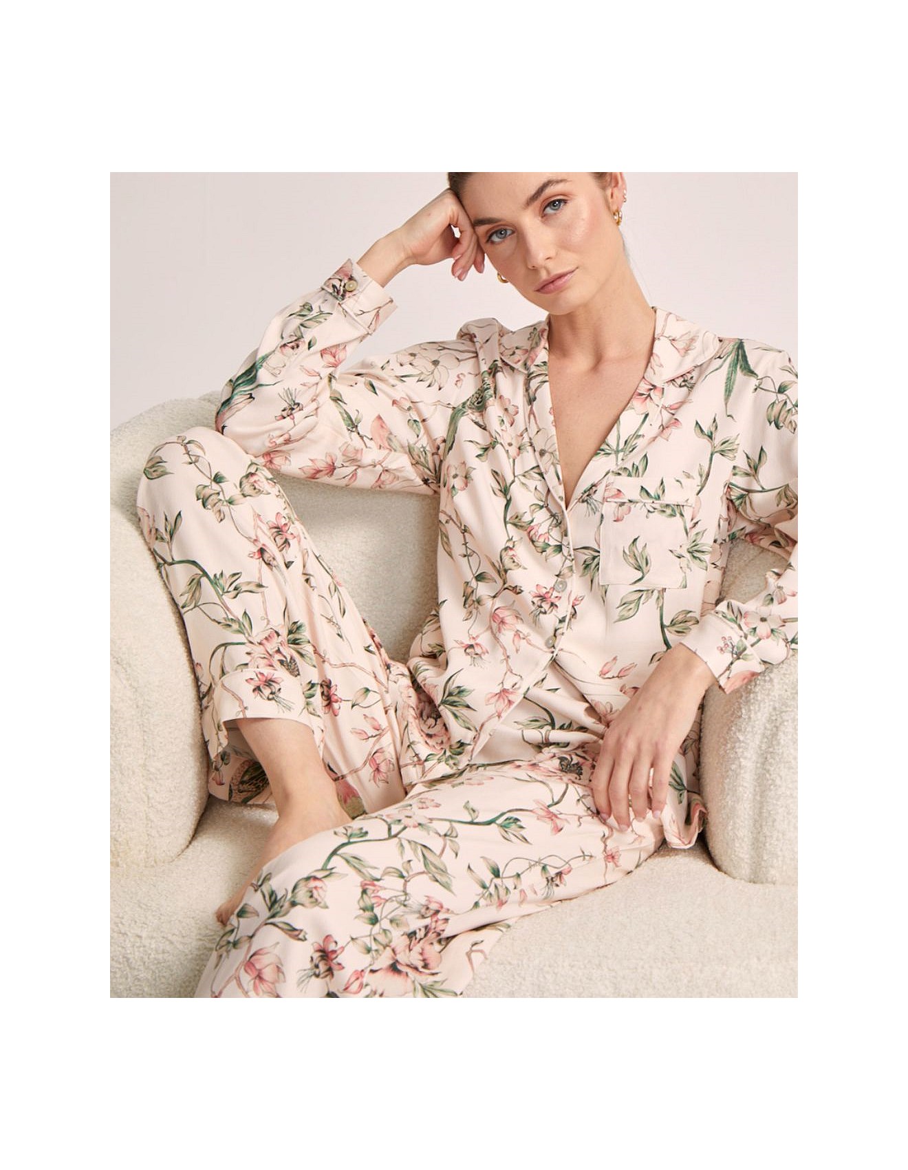 Damen Lounge Pyjama Set - Blumenprint Mit 3/4 Ärmel & Weiten Shorts