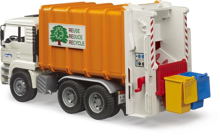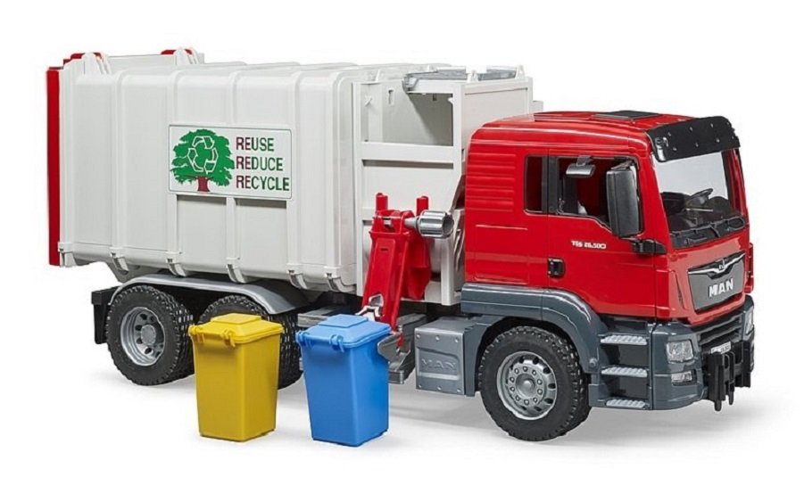 Das beliebte Bruder Mülltonnen-Set - jetzt wird das Müllauto-Spiel noch realistischer! Enthält 3 bunte kleine Mülltonnen und einen großen grauen Container. Perfekt für Bruder Müll-LKWs wie MB Actros 02660/02661 oder MAN 02760/02753. Aus der PROFI Line - super detailliert und robust verarbeitet. Maße: 241x167x113mm - genau die richtige Größe für Kinderhände. Für drinnen und draußen geeignet, ab 3 Jahren. Macht das Rollenspiel noch authentischer und fördert die Kreativität. Die Tonnen lassen sich öffnen und befüllen - genau wie bei den Großen! Perfekt als Ergänzung zu vorhandenen Bruder-Fahrzeugen oder als Geschenk für kleine Müllwagen-Fans. Einfach ein klasse Spielzeug, das lange Freude macht und immer wieder neue Spielideen liefert!