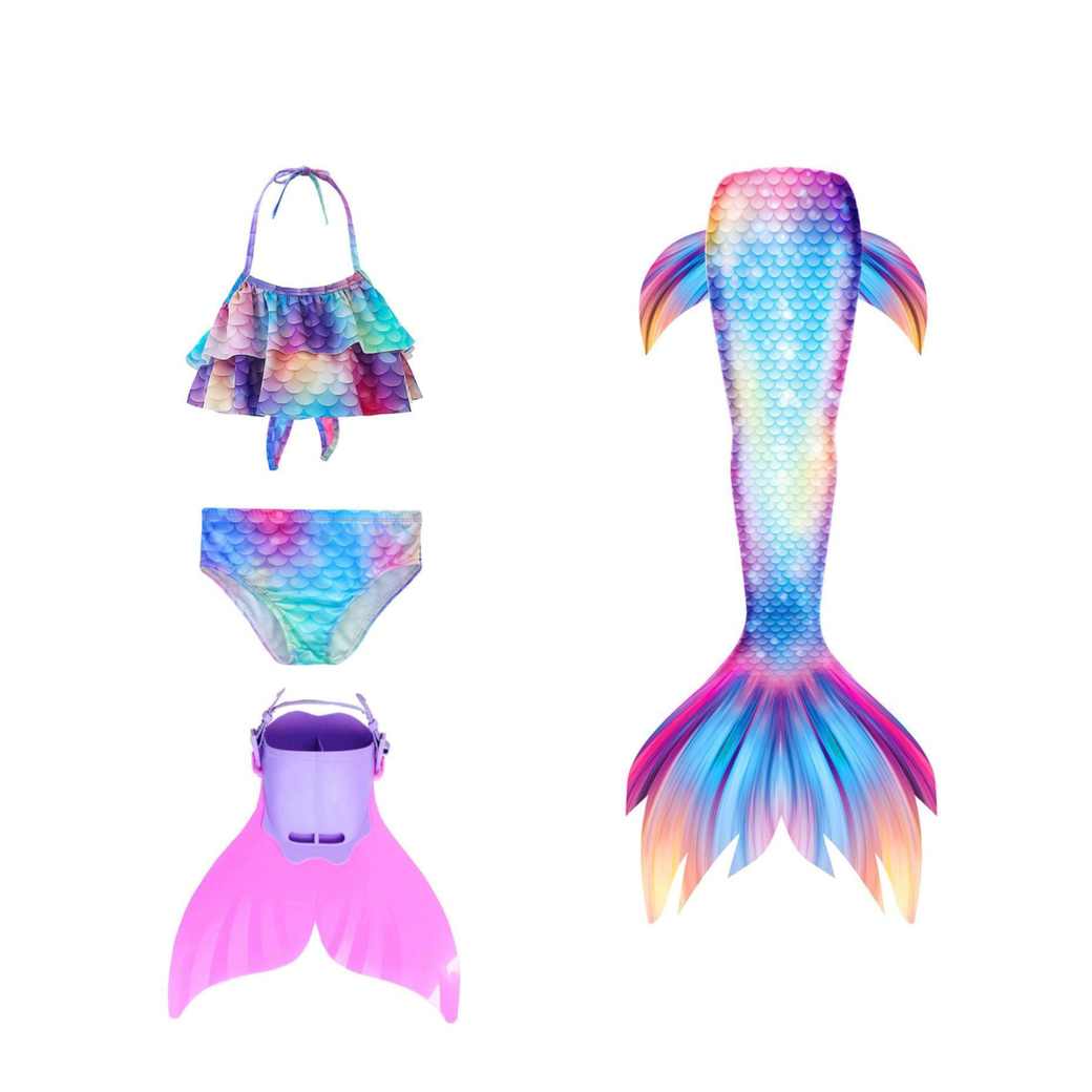Mädchen Meerjungfrau Bikini Set Mit Fisch-Schwanz - Cooles Badeoutfit Für Kinder 4-13 Jahre