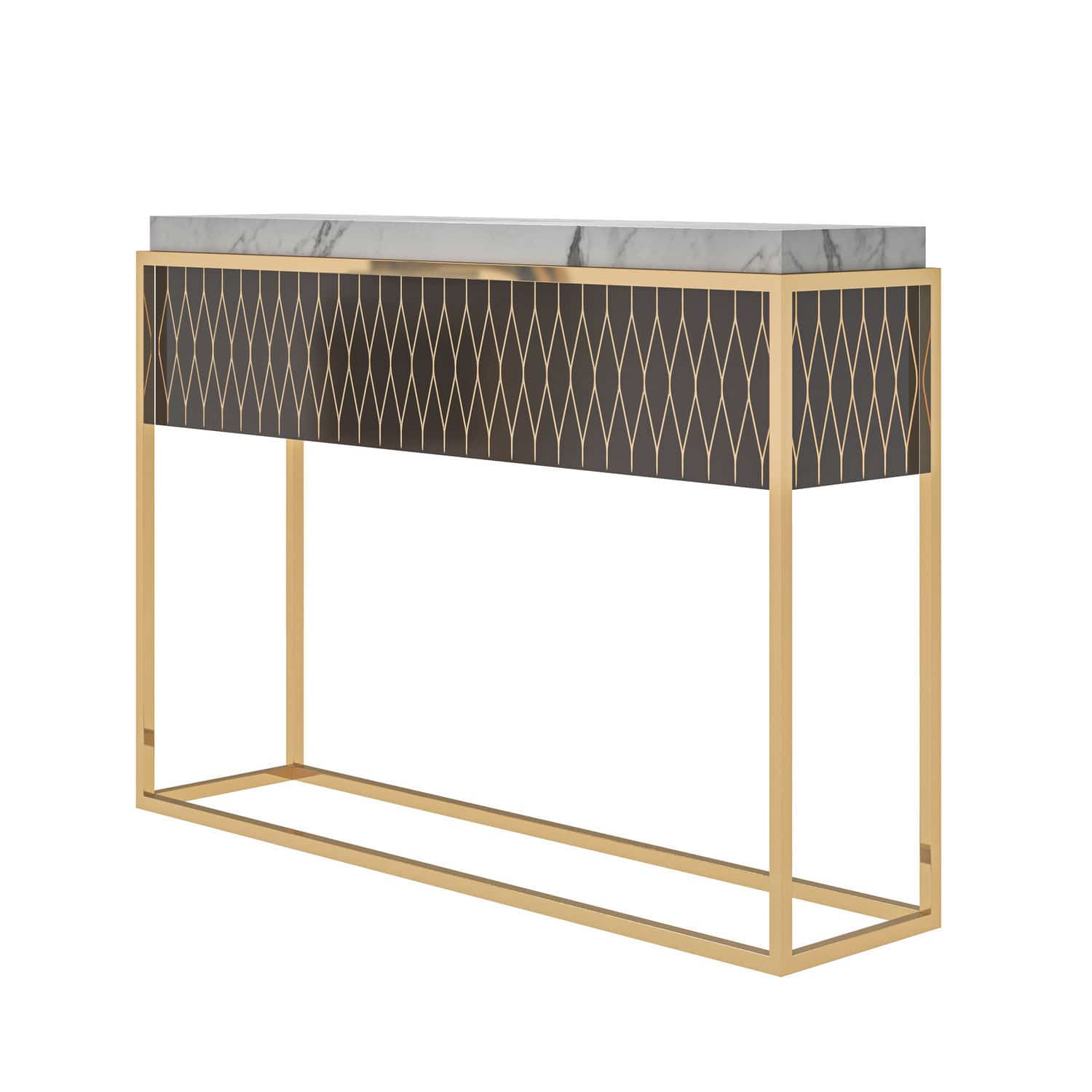 Moderner Konsolentisch 120cm Mit Schubladen - Weiß Mit Goldgestell