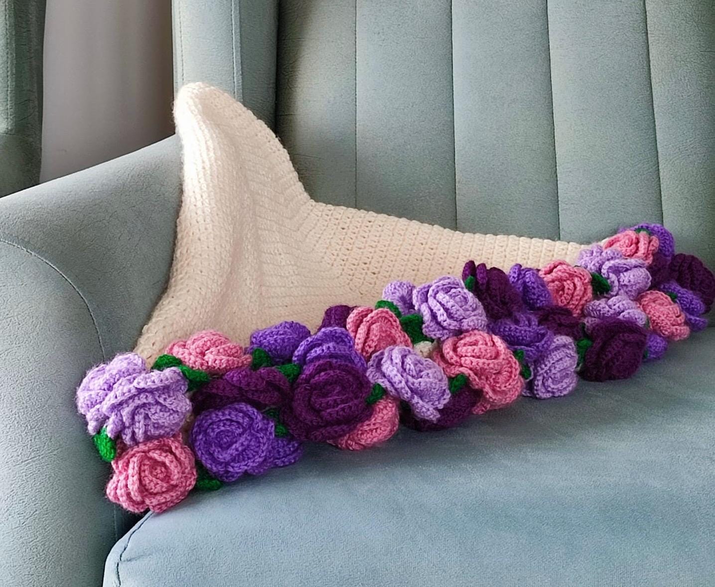 AASIRA Gehäkelte Blumen Decke - Rollbarer Blumenstrauß Aus Wolle 80cm Durchmesser