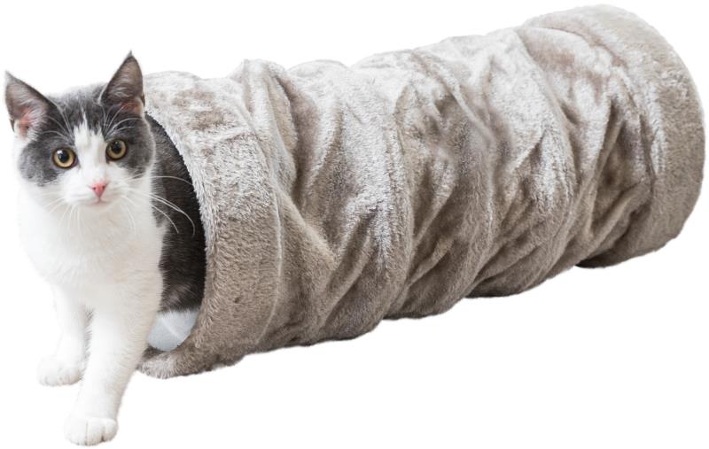 Katzentunnel Mit Raschel-Funktion - Grauer Plüschtunnel ∅25x100cm