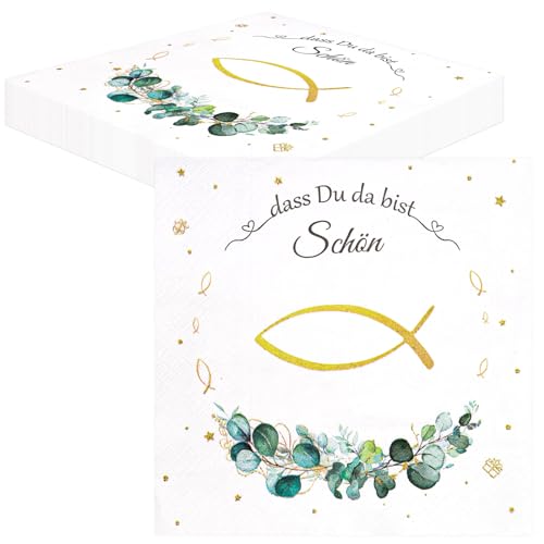 Einfach bezaubernd! Diese 40 weißen Servietten mit niedlichem Fisch- und Eukalyptus-Muster machen jede Feier zu etwas Besonderem. Perfekt für Hochzeiten, Taufen, Konfirmationen oder Geburtstage - die Aufschrift 'Schön dass du da bist' sorgt für eine herzliche Atmosphäre. Aus umweltfreundlichem, ungiftigem Papier und dreilagig verarbeitet, sind diese Servietten besonders saugstark und stabil. Viel besser als die billigen Einweg-Servietten! Die zarten rosa und goldenen Akzente sehen edel aus, ohne aufdringlich zu wirken. Ob auf dem festlich gedeckten Tisch oder als kleine Aufmerksamkeit für deine Gäste - diese Servietten hinterlassen einen bleibenden Eindruck. Praktisch für den täglichen Gebrauch, aber besonders für besondere Anlässe wie Babypartys, Junggesellenabschiede oder Familienfeiern. Mach deine nächste Party unvergesslich mit dieser liebevollen Tischdekoration!