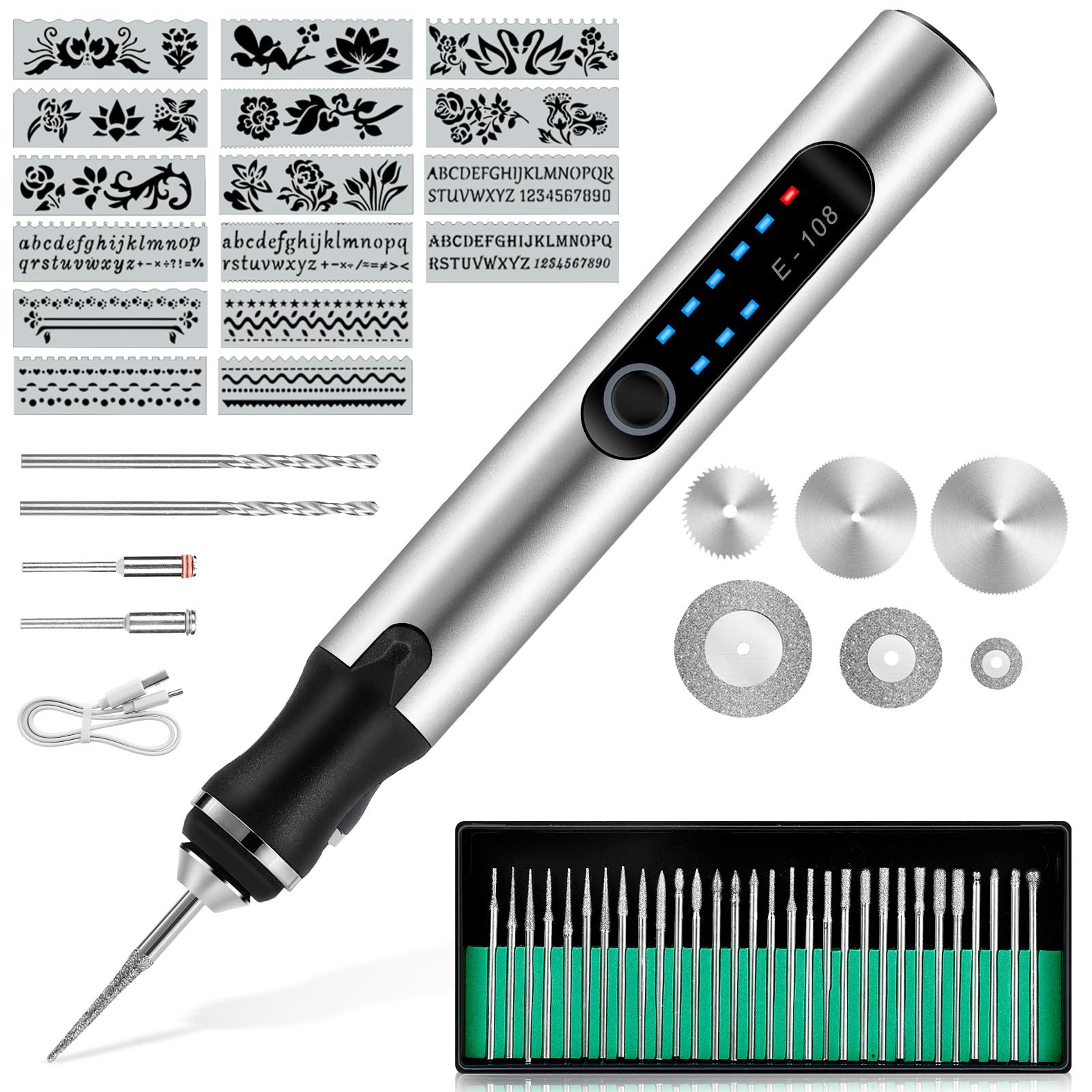 Kreativ sein war noch nie so einfach! Dieser elektrische Gravierstift mit 3 Geschwindigkeitsstufen (8.000-25.000 U/min) und 30 verschiedenen Bits ist dein Alleskönner für Holz, Metall, Glas und Keramik. Dank USB-C-Akku völlig kabellos und super flexibel. Das kompakte Design (120mm lang, 40g leicht) liegt perfekt in der Hand, das LED-Display zeigt Akkustand und Drehzahl. Inklusive Aufbewahrungsetui - ideal für personalisierte Geschenke, Schmuckarbeiten oder Hobby-Projekte. Einfach aufladen und loslegen mit deinen kreativen Ideen!