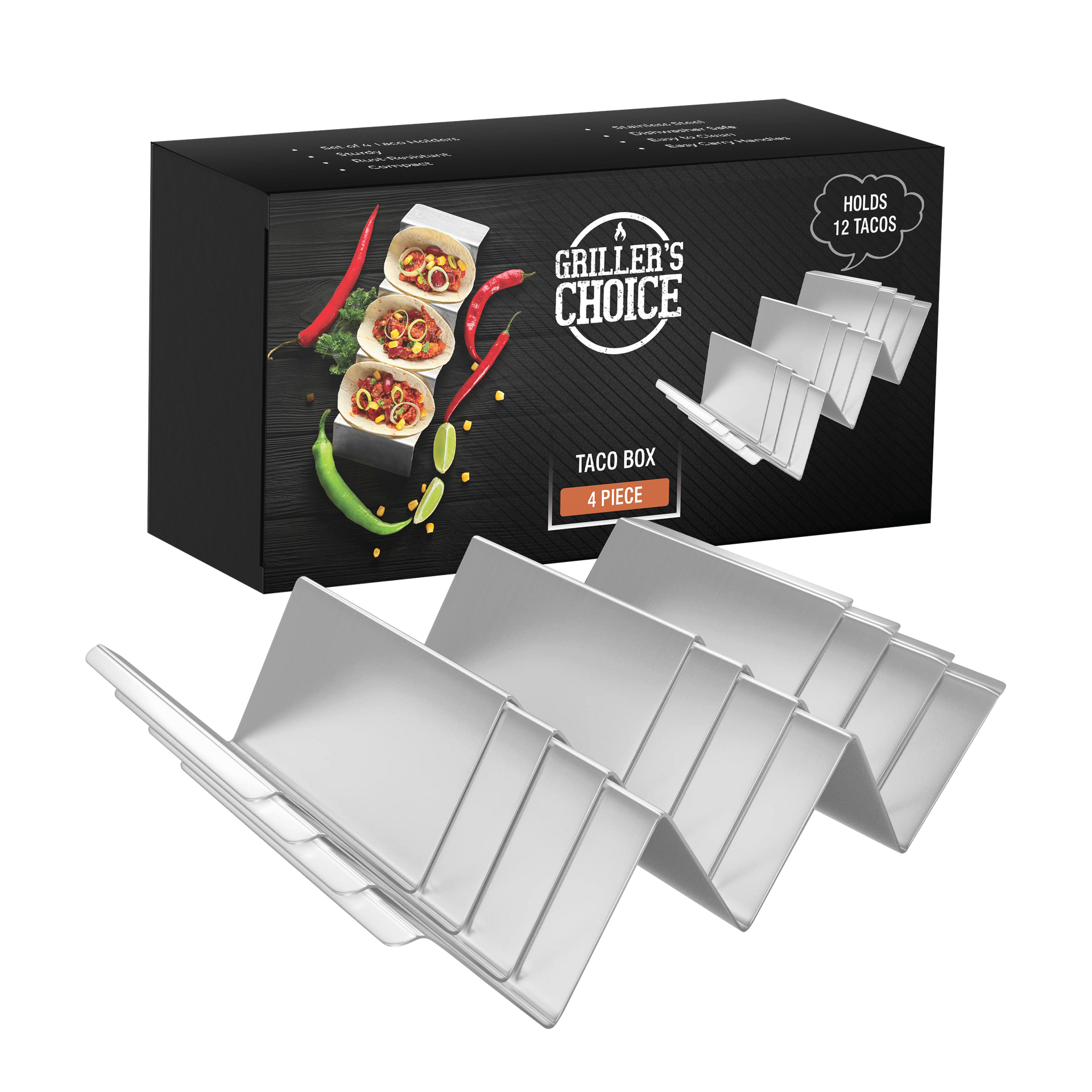 Taco-Abend mal anders! Diese 6 bunten Taco-Halter aus ABS-Kunststoff machen deine Tacos zum echten Hingucker. Jeder Halter fasst bis zu 4 Tacos und hält sie sicher aufrecht - kein Umkippen oder Herausfallen mehr! Die breiten Fächer bieten Platz für reichlich Füllung und passen perfekt auf Standardteller. BPA-frei und ungiftig, spülmaschinenfest und leicht zu reinigen. In den Farben Rot, Gelb und Grün - fröhlich und dekorativ. Perfekt für Restaurants, Partys oder den Heimgebrauch. Nicht nur für Tacos geeignet, sondern auch für Burritos, Sandwiches, Wraps und mehr. Mit diesem Set für bis zu 24 Tacos wird deine nächste Party garantiert ein voller Erfolg!