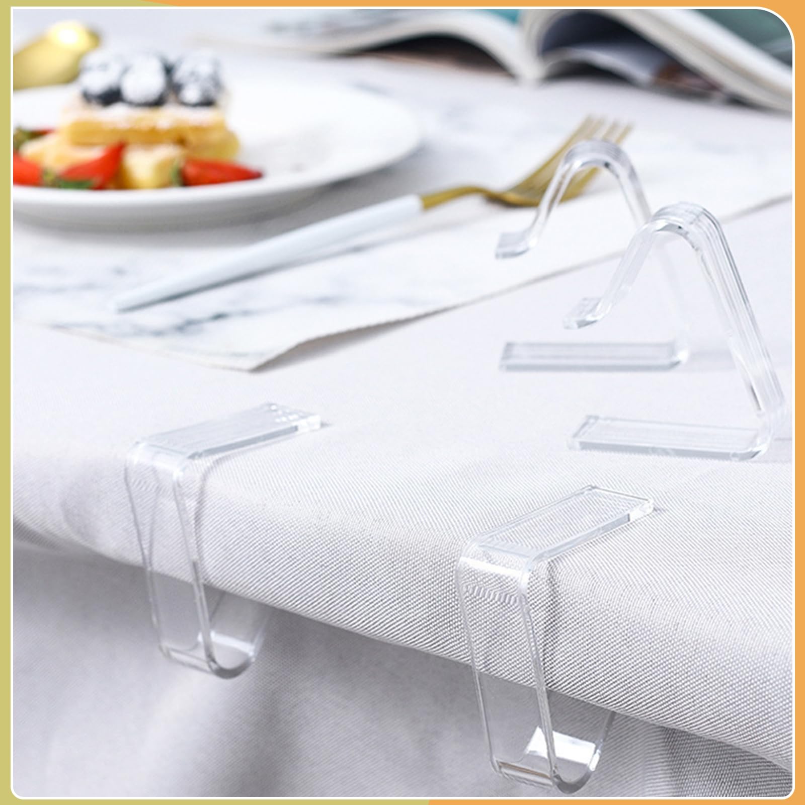 Endlich keine verrutschten Tischdecken mehr! Diese 8 transparenten Clips aus stabilem Polycarbonat halten deine Tischdecke sicher an Ort und Stelle. Egal ob Wind oder wenn jemand dran zieht - die Decke bleibt, wo sie sein soll!