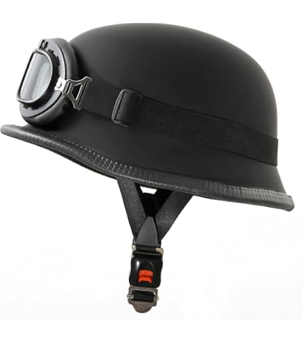 Stylischer Retro-Helm für echte Individualisten! ECE-zertifiziert - sicher und geprüft. Im Vintage-Design mit Fliegerbrille im Set. Leichte ABS-Schale - bequem zu tragen. Mit verstellbarem Schnellverschluss. Größe M (54-57cm) für perfekten Sitz. Inklusive Staubmaske - alles dabei. Perfekt für Cruiser, Scooter und Touren. Siehst du nicht gut aus damit?